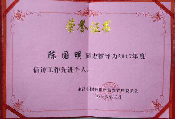 公司社會治安綜合治理和信訪工作榮獲國資委2017年度先進單位,陳國明、應(yīng)友信同志榮獲國資委2017年度先進個人稱號。